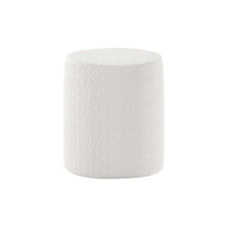 Pack Lit coffre 90x200cm Tête Demi-Lune + Pouf Tissu Bouclé Blanc - CONNIE.