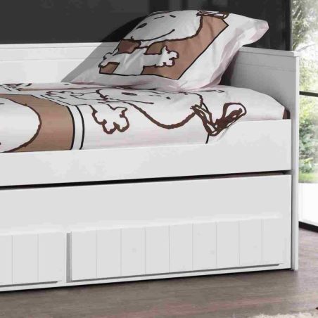 Lit Gigogne 90x200cm avec Tiroir de Lit pour couchage et 2 Tiroirs de rangement Effet Lambris Blanc de la gamme Cleo.