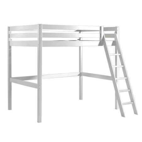 Lit Mezzanine en Pin Laqué Blanc 140x200cm Échelle Inclinée de la gamme Sleepy.