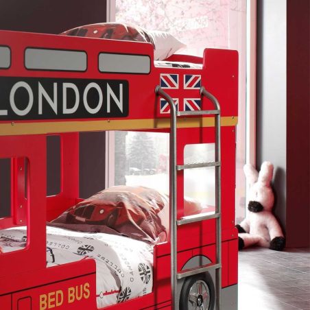 Lits Superposés 90x200cm Bus Londres avec Leds et Matelas Mousse de la gamme Soho.