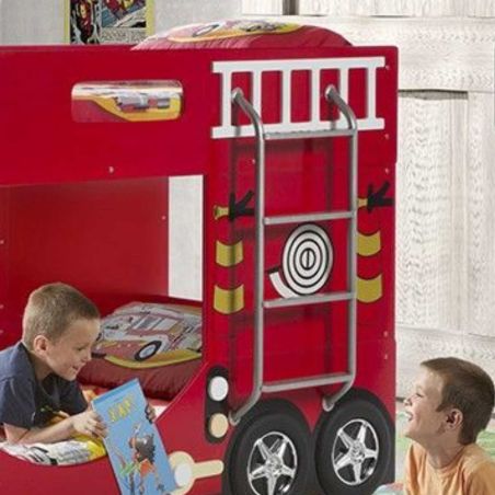 Lits Superposés Camion Pompier Rouge 90x200cm avec Matelas Mousse de la gamme Fireman.