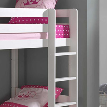 Lit Superposé H160 en Pin Laqué Blanc 90x200cm de la gamme Sleepy.