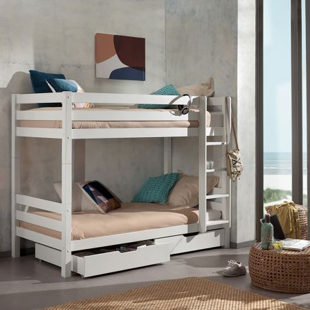 Lit Superposé H160 Laqué Blanc 90x200cm avec 2 Tiroirs de la gamme Sleepy.