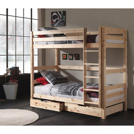 Lit Superposé H180 en Pin Naturel 90x200cm avec 2 Tiroirs de la gamme Sleepy.