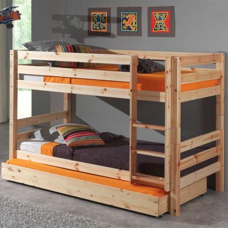 Lit Superposé H140 en Pin Naturel 90x200cm avec Lit-Tiroir de la gamme Sleepy.