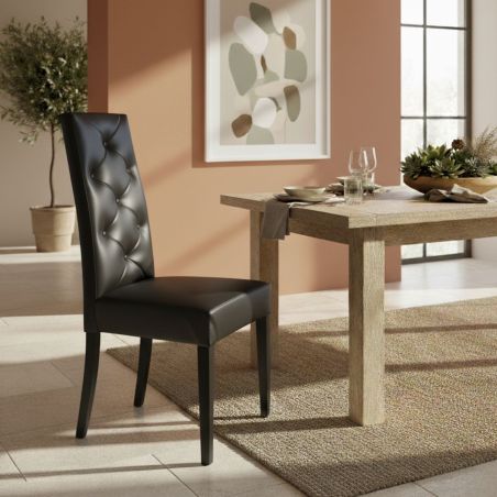 Lot de 2 Chaises Simili Noir et Pieds Laqués de la gamme Trevi.