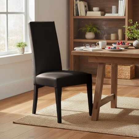 Lot de 2 Chaises Simili Marron et Pieds Laqués de la gamme Torino.