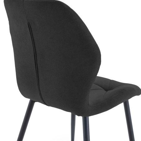 Lot de 2 chaises en tissu polyester doux noir et pieds en métal laqué noir - LUCIANA. Une chaise au style contemporain ré-haussée d'un élégant motif losange en surpiqûre. Conçue pour allier esthétisme et ergonomie, elle est la pièce maîtresse idéale autour de votre table.