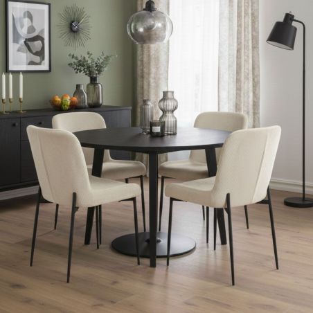 Créez une atmosphère détendue et chaleureuse dans une salle à manger, son tissu côtelé rappelle subtilement le style des années 70 tout en étant complètement ancrée dans les tendances déco actuelles.