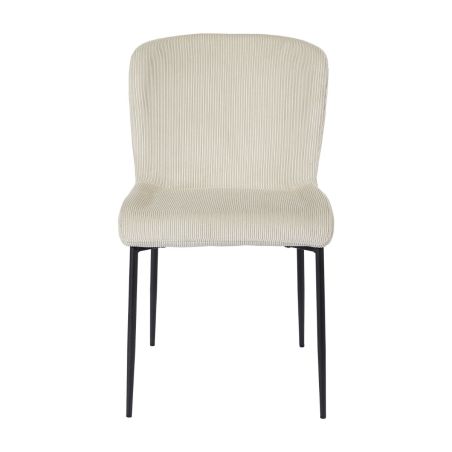 Lot de 2 chaises en tissu velours côtelé coloris crème pieds métal noir - LUMIA.