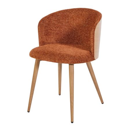 Lot de 2 chaises enveloppantes en tissu chenillé cognac et dossier bois pieds métal noir - OLYA