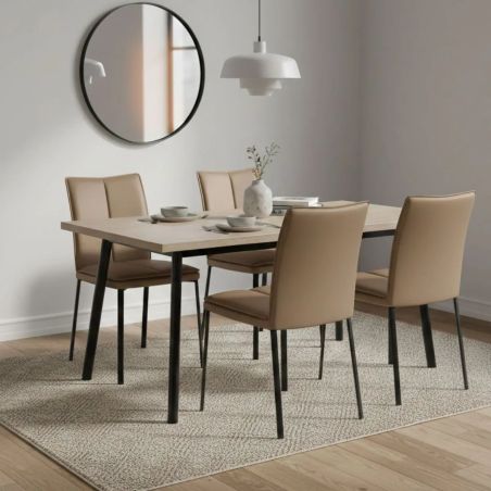 L’assise est dotée d’une galette de rembourrage intégrée qui invite à prolonger les repas en famille ou entre amis. Le dossier haut est souligné par une couture verticale centrale, apportant du relief et une allure sophistiquée à l'ensemble.