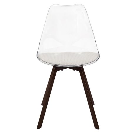 Lot de 2 chaises coque transparente coussin assise en velours côtelé crème - MOARY.