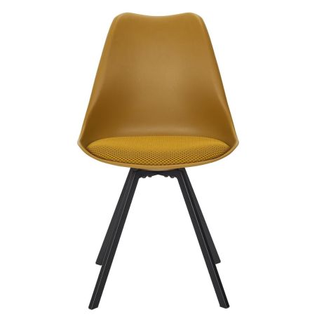 Lot de 2 chaises coque plastique et coussin en tissu texturé maille 3D jaune - ELECTRON.