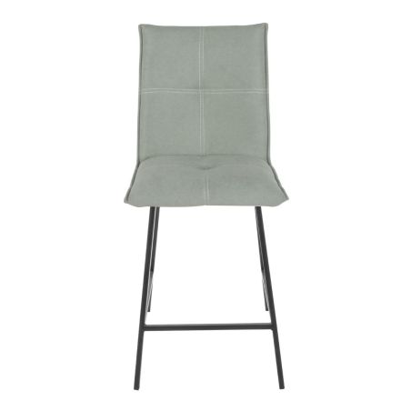 Structure métallique, finition peinture mate grise. Revêtement assise et dossier en tissu (coton recyclé et élasthanne) coloris vert d'eau. Mousse dossier de densité 17kg/m3. Mousse assise de densité 30kg/m3.