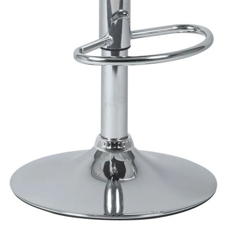 Assise en PVC souple Marron. Garnissage : Mousse polyuréthane de densité 25kg/m3. Base et pied en acier finition chromé. Assise réglable en hauteur grâce à une manette. Suspension à gaz.