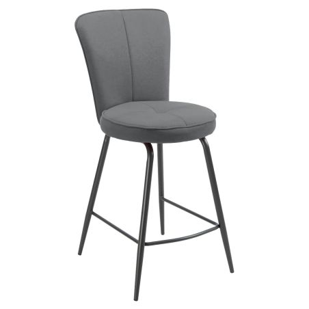 Lot de 2 tabourets assise matelassée tissu toucher doux gris pieds métal laqué anthracite - ELLIPSE.