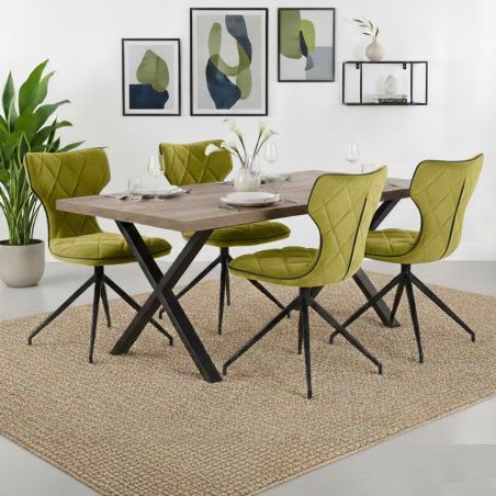 Lot de 4 Chaises Tissu Vertes Surpiqures Carreaux de la gamme Styk.