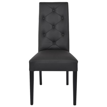 Piétement en hêtre massif laqué noir. Revêtement assise et dossier en simili cuir coloris noir. Chaises livrées montées pour une utilisation immédiate.