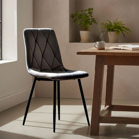 Osez le velours ! Des chaises simple et chic à la fois grâce à leur finition capitonnées.