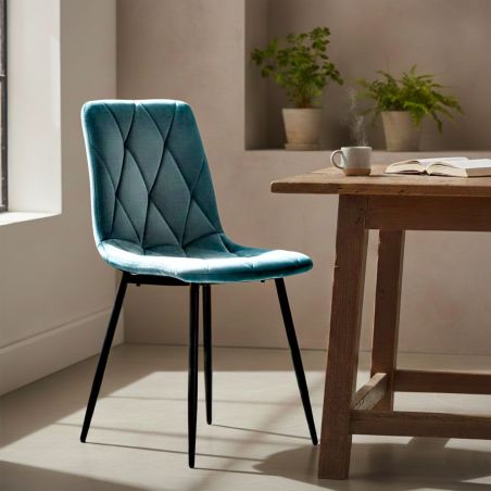 Osez la couleur et le velours ! Des chaises simple et chic à la fois grâce à leur finition capitonnées. Des couleurs tendances pour donner du style à votre coin repas.