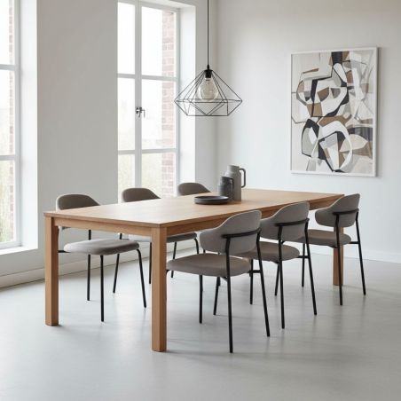 Le revêtement en tissu texturé offre une finition douce et résistante, tandis que la structure en métal peint garantit une stabilité parfaite et une longue durée de vie. Grâce à son assise rembourrée et son dossier incurvé, cette chaise offre un confort d’assise optimal pour vos repas ou vos moments de détente.