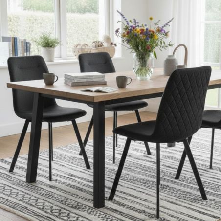 Lot de 4 chaises en microfibre avec dossier surpiqûres en losange anthracite pieds métal noir - ELYO.