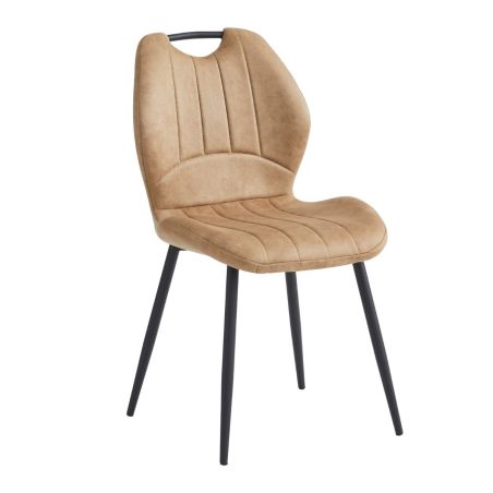 Lot de 4 chaises en tissu microfibre beige avec poignée et pieds métal laqué anthracite - ALDIM.