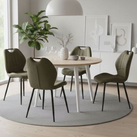 Lot de 4 chaises en tissu microfibre vert avec poignée et pieds métal laqué anthracite - ALDIM.
