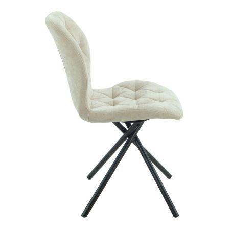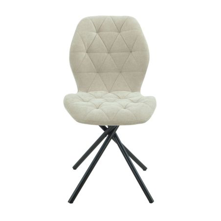 Lot de 4 chaises pivotantes en tissu déperlant beige avec piqûres décoratives losanges - NOLYA.