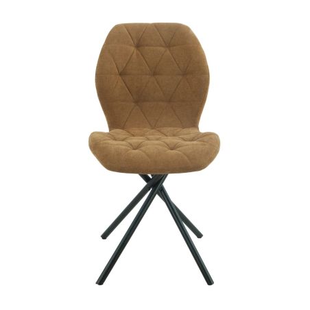 Lot de 4 chaises pivotantes en tissu déperlant camel avec piqûres décoratives losanges - NOLYA.