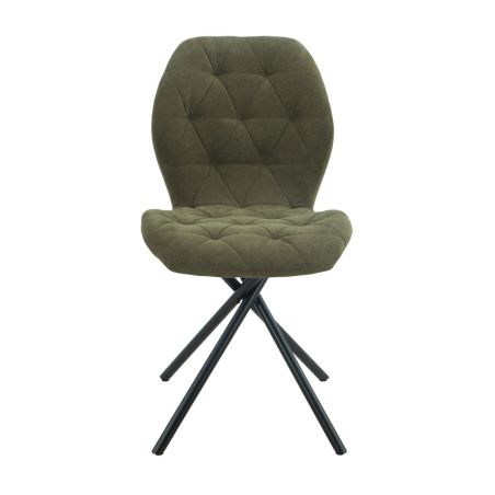 L'assise et le dossier sont revêtus d'un tissu texturé doux au toucher. Le matelassage en forme de losanges sur toute la coque confère à la chaise une allure luxueuse et haut de gamme, tout en offrant un excellent soutien.