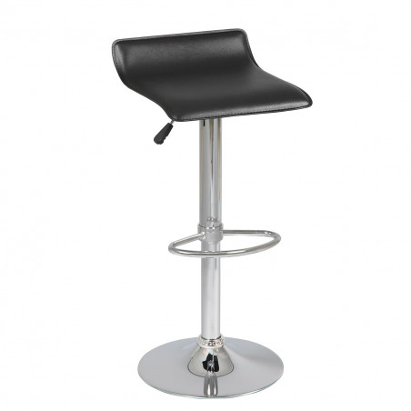 Base et pied en acier finition chromée. Assise en PVC. Garnissage en mousse polypropylène. Assise réglable en hauteur grâce à une manette. Suspension à gaz. Charge maximale conseillée : 120kg.