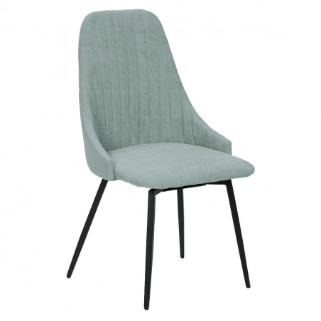 Piétement métallique coloris noir. Assise et dossier recouverts de tissu coloris vert céladon.