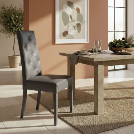 Lot de 6 Chaises Simili Gris et Pieds Laqués de la gamme Trevi.