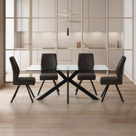 Lot de 6 chaises en velours côtelé et pieds en métal laqué noir coloris anthracite - BANIL.