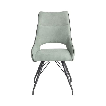 Lot de 6 chaises tissu coloris vert d'eau pieds métal laqué gris - SILOUAN.