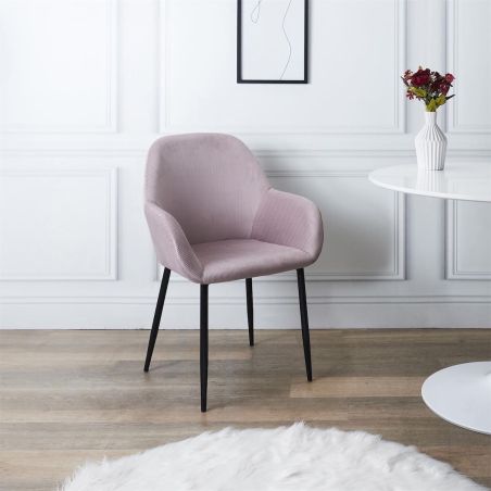 Lot de 2 Fauteuils Velours Côtelé Rose Alessia.