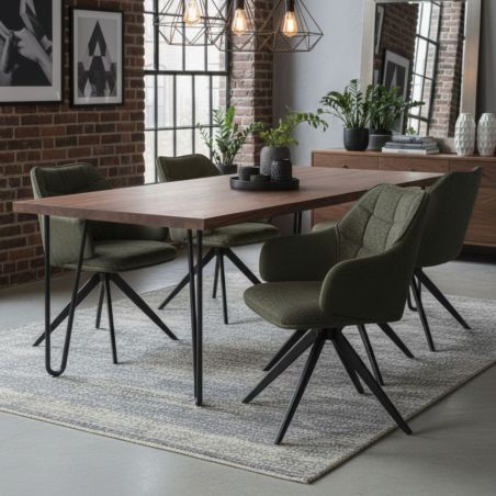 Ce modèle de fauteuil de table est une fusion parfaite entre un confort enveloppant et une esthétique industrielle-chic prononcée, idéale pour les tables de salle à manger modernes ou les bureaux de direction.