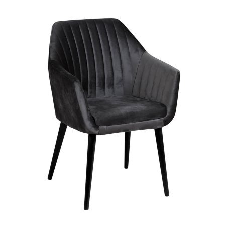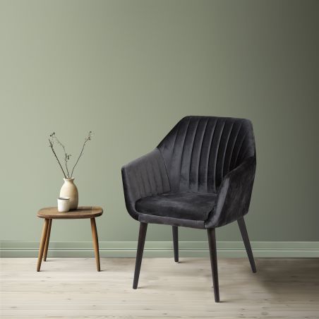 Lot de 2 Fauteuils tissu velours gris anthracite pieds laqués wengé - RIVIERA.