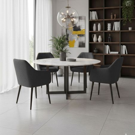 Structure en Hêtre massif. Piètement finition laqué Noir. Garniture en Mousse Polyuréthane, Revêtement 100% Polyester.