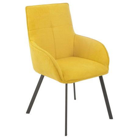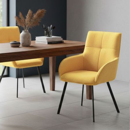 Lot de 2 fauteuils de table enveloppants en tissu jaune pieds métal laqué anthracite - EVIDENCE.