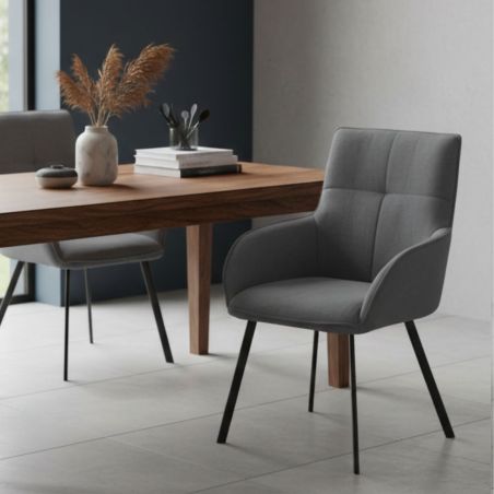 Lot de 2 fauteuils de table enveloppants en tissu gris pieds métal laqué anthracite - EVIDENCE.