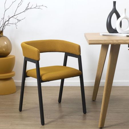 Lot de 2 fauteuils design de table en tissu texturé maille 3D jaune - ELECTRON.