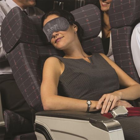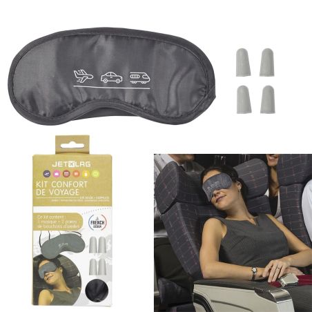 Masque de voyage en polyestère gris + 2 paires de bouchons d'oreilles.