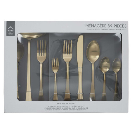 Ménagère 39 Pièces en Inox Doré.