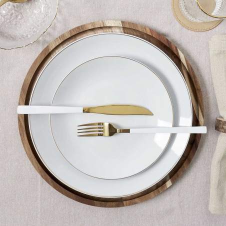 Ménagère 16 Pièces en Inox Or Manche Blanc, pour 4 personnes.