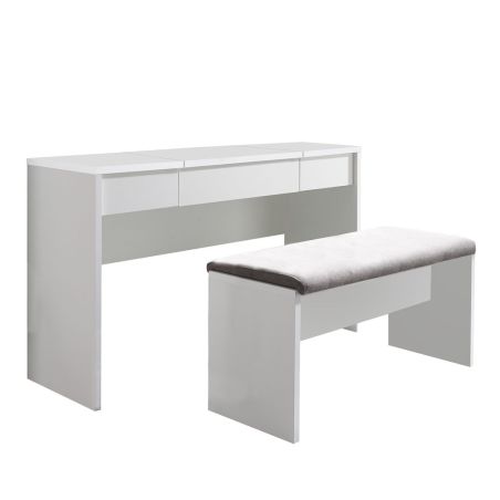 Coiffeuse laquée blanche 2 Tiroirs et miroir relevable avec banquette - LINDSEY.
