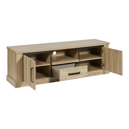 Meuble TV 2 Portes 1 Tiroirs Aspect Bois Chêne Clair Finition Frank de la gamme Lorenzo.