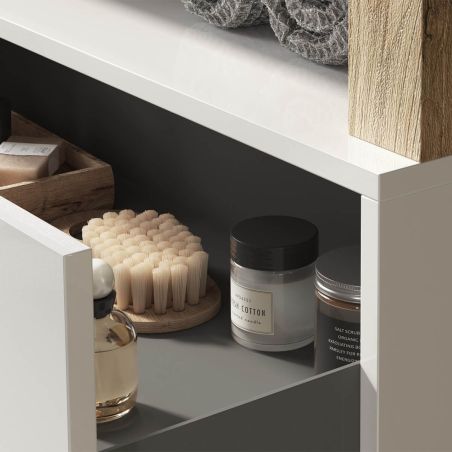 Conçu en panneaux de particules haute densité. Revêtement mélaminé laqué blanc aspect bois de première qualité.